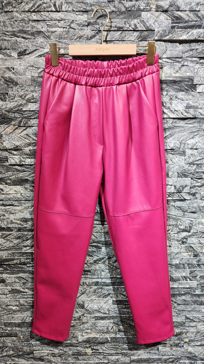 Faux leather pant,with size pockets and elastic waist