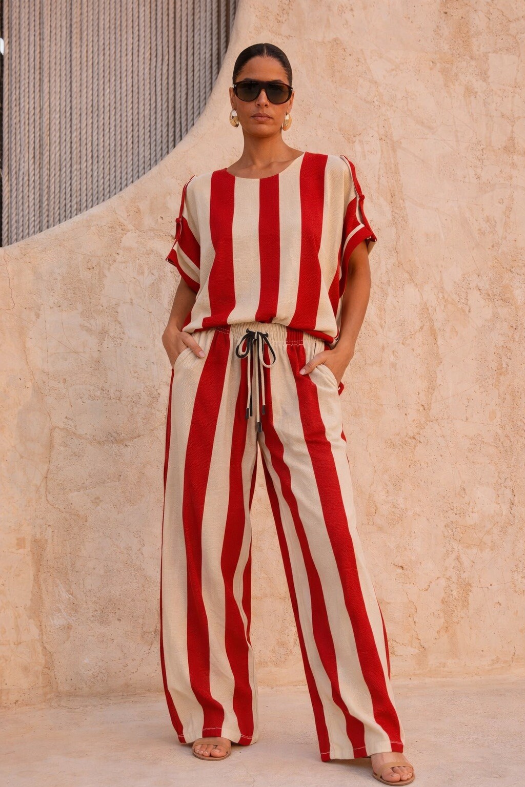 Add a fresh pop of colour to your wardrobe with this effortlessly chic flowy striped top. Designed with a relaxed silhouette, it drapes beautifully for a light, airy feel—perfect for warmer days.