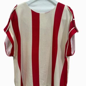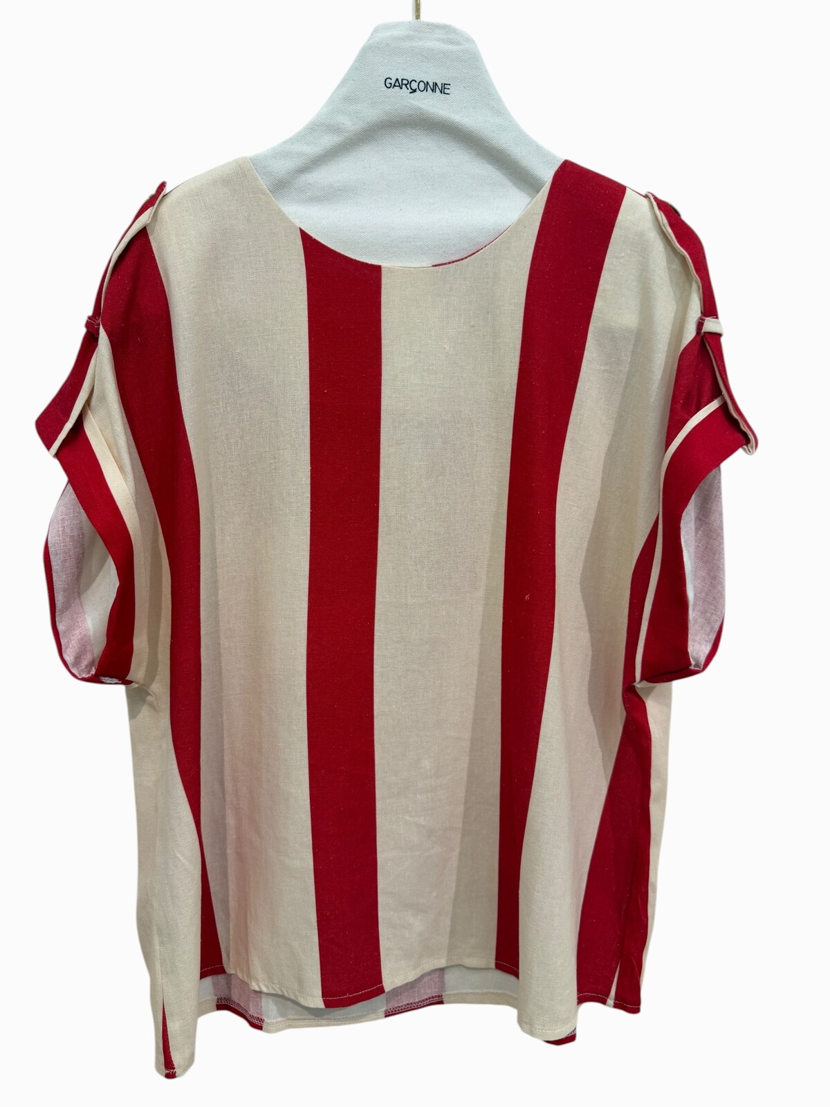 Featuring bold vertical stripes and soft cap-style sleeves with subtle detailing, this top blends comfort with a modern, feminine edge. Easy to dress up or down, it pairs perfectly with jeans, trousers, or skirts for an instantly polished look.