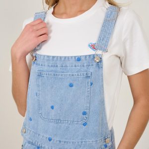 2 buttons on the side with pockets on the side and 2 pockets on the back of jeans