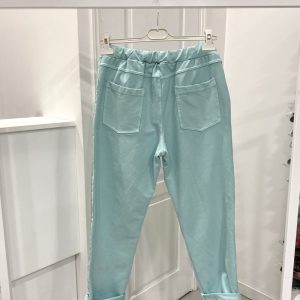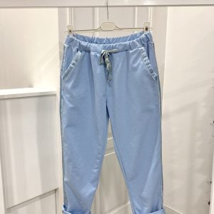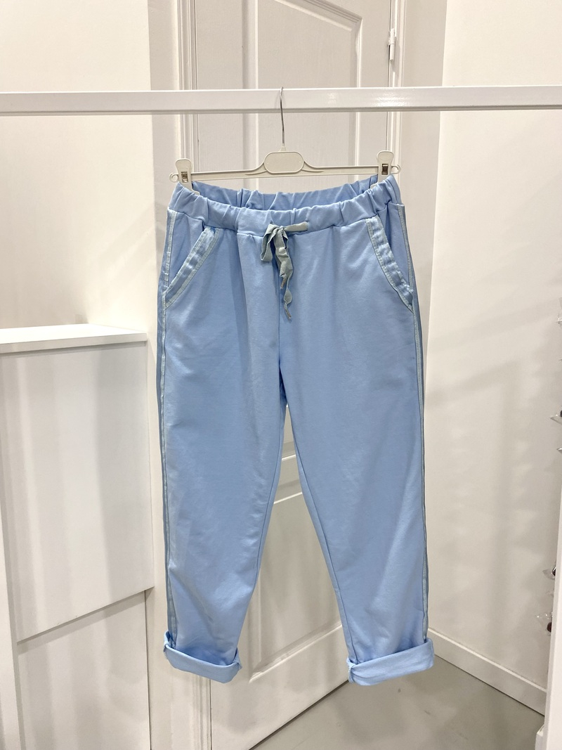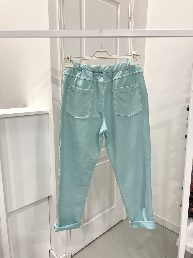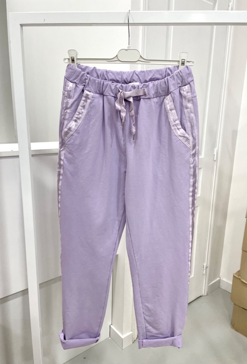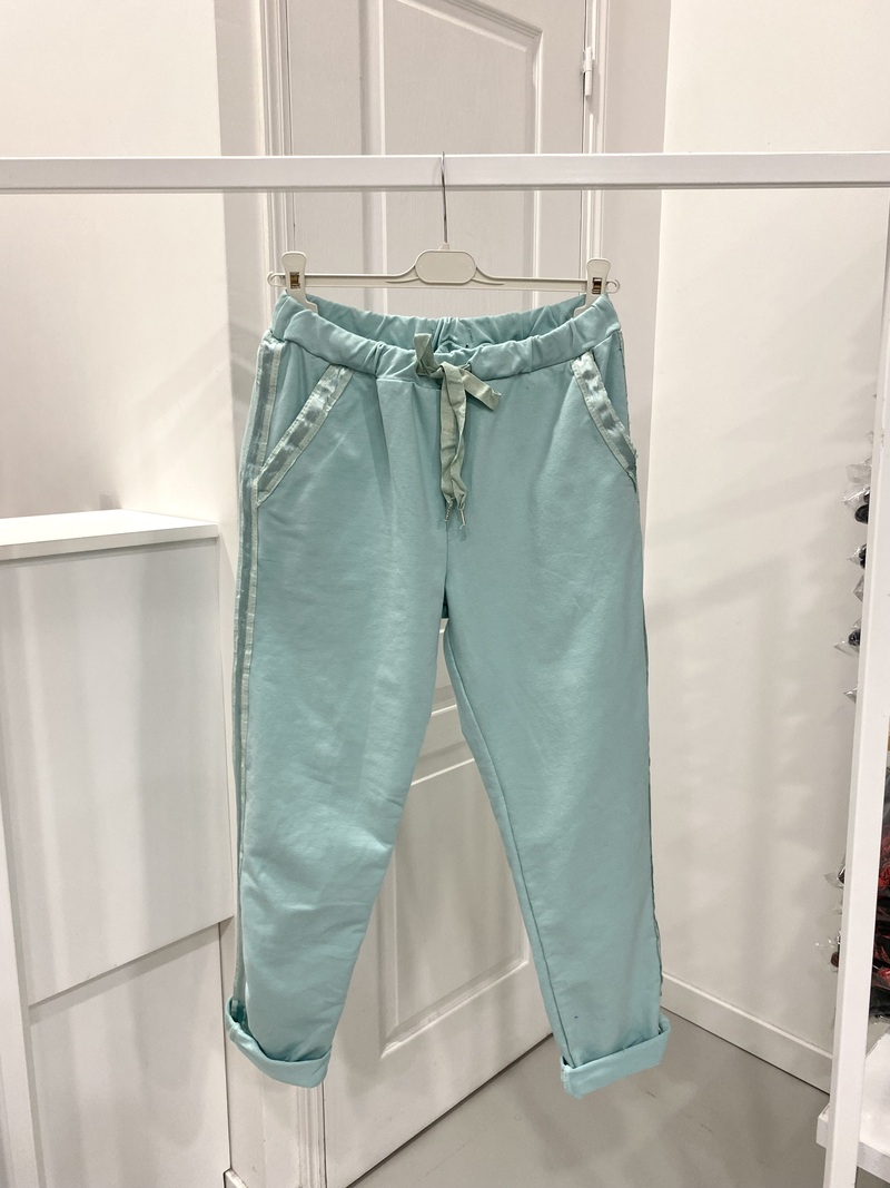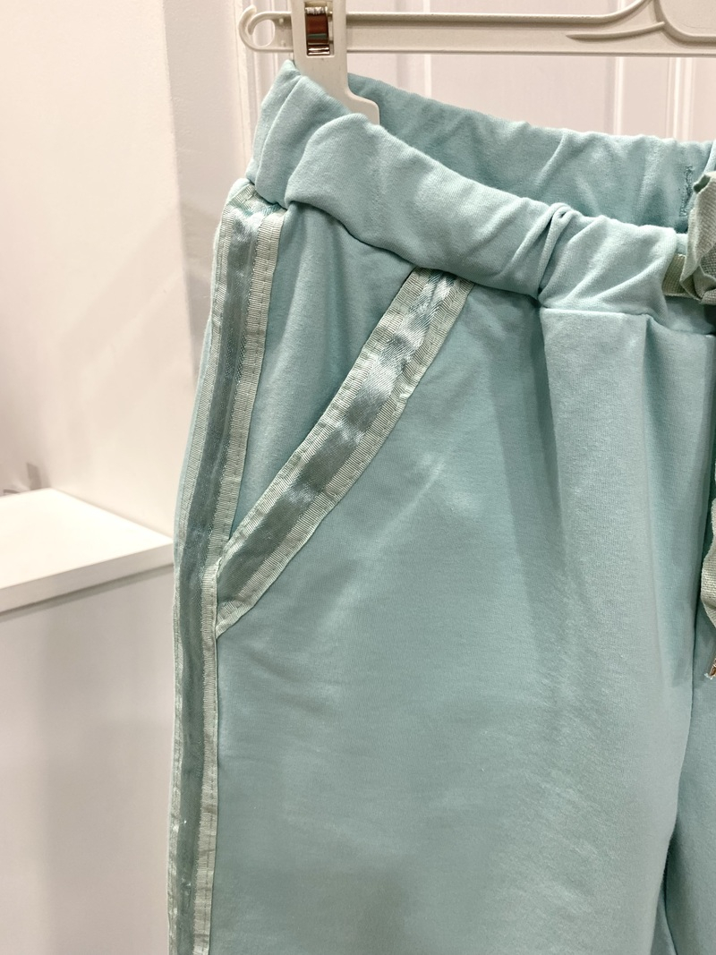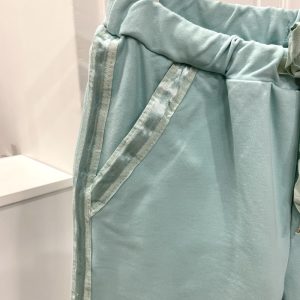 These Joggers just go with everything, they are so comfortable, with two front pockets and two on the back and there is a drawstring around the waist and to finish them off a lovely satin strip down along the leg
